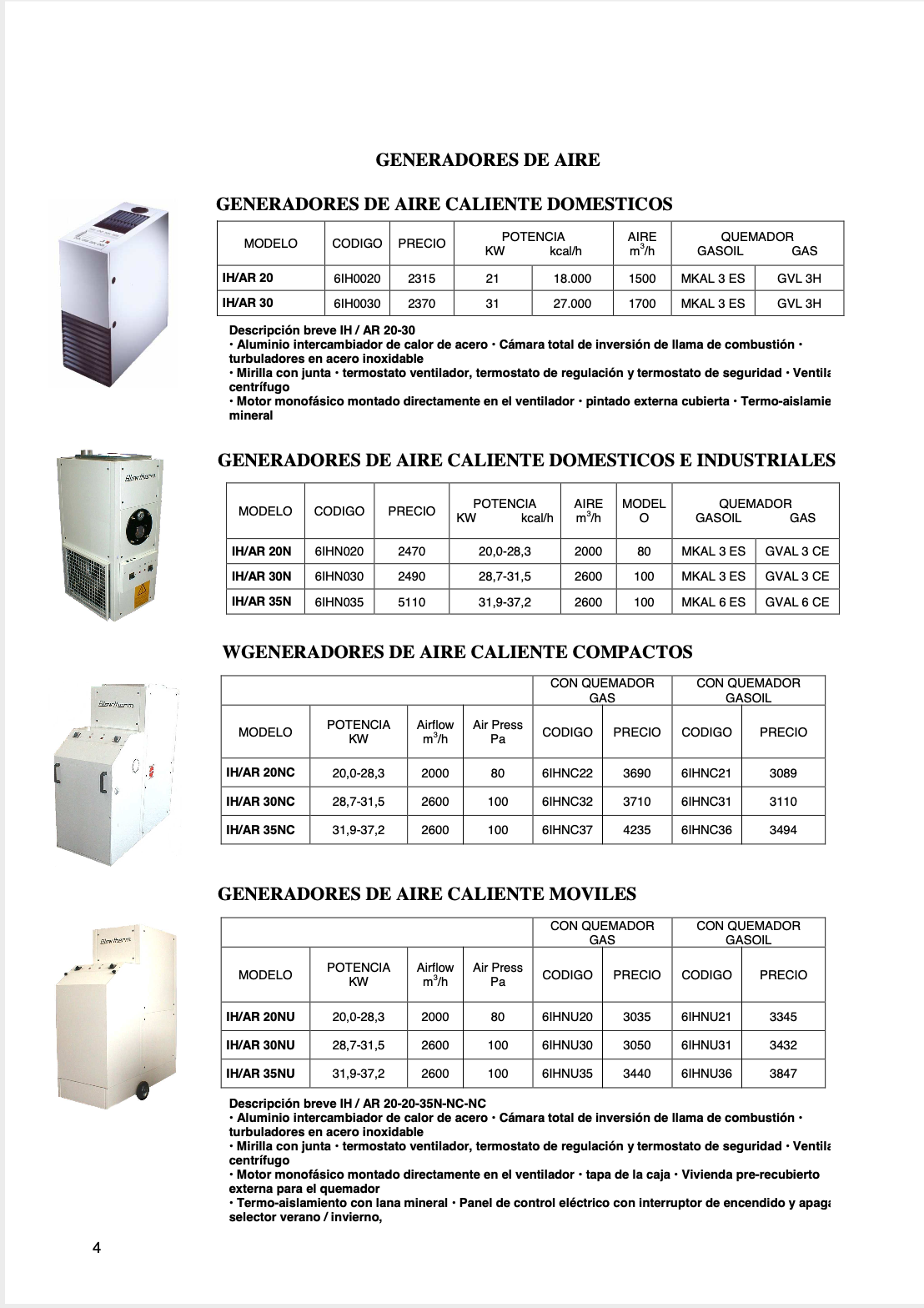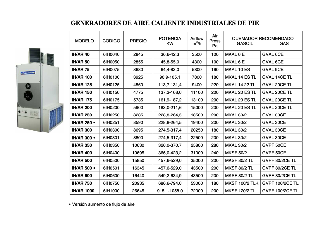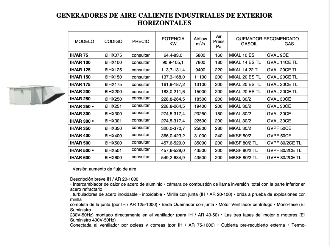 GENERADORES DE AIRE CALIENTE BLOWTHERM SERIE IH-AR