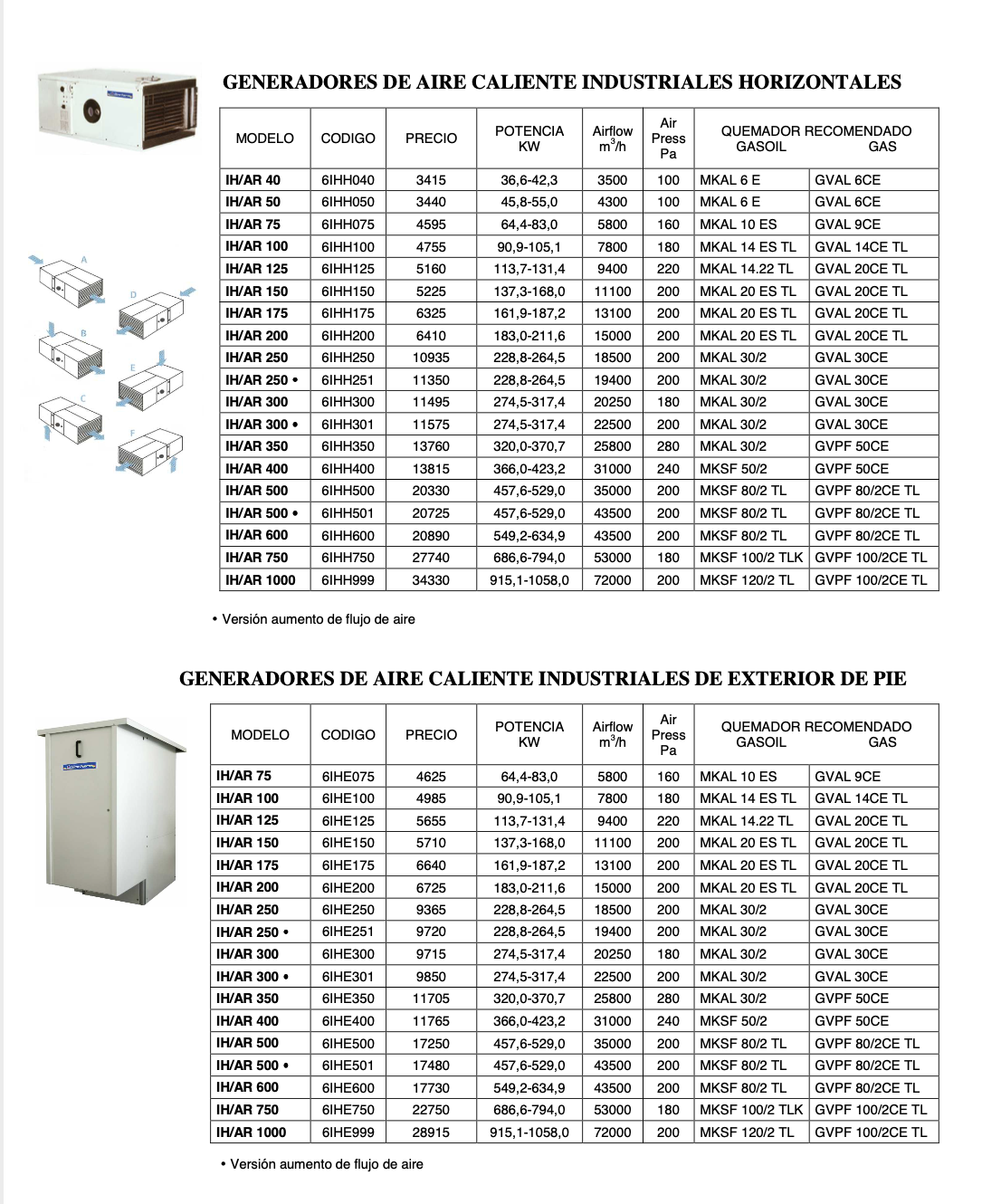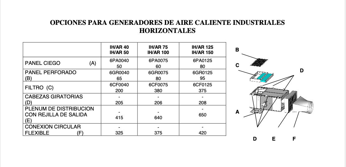 GENERADORES DE AIRE HORIZONTALES PARA APLICACIONES INDUSTRIALES