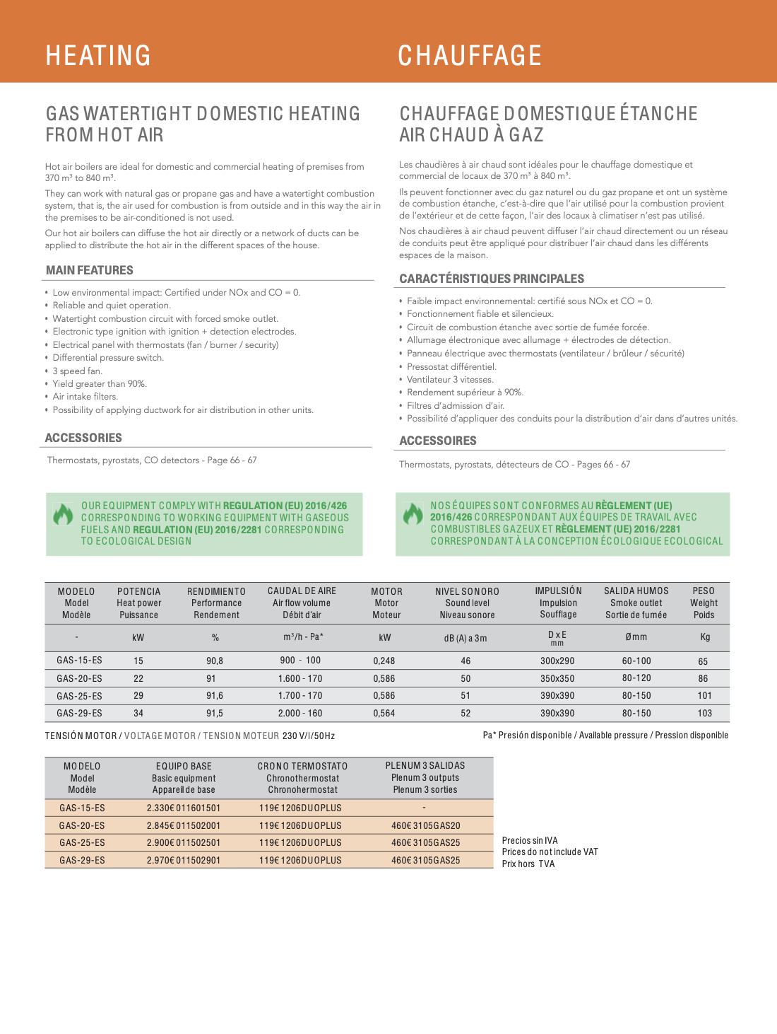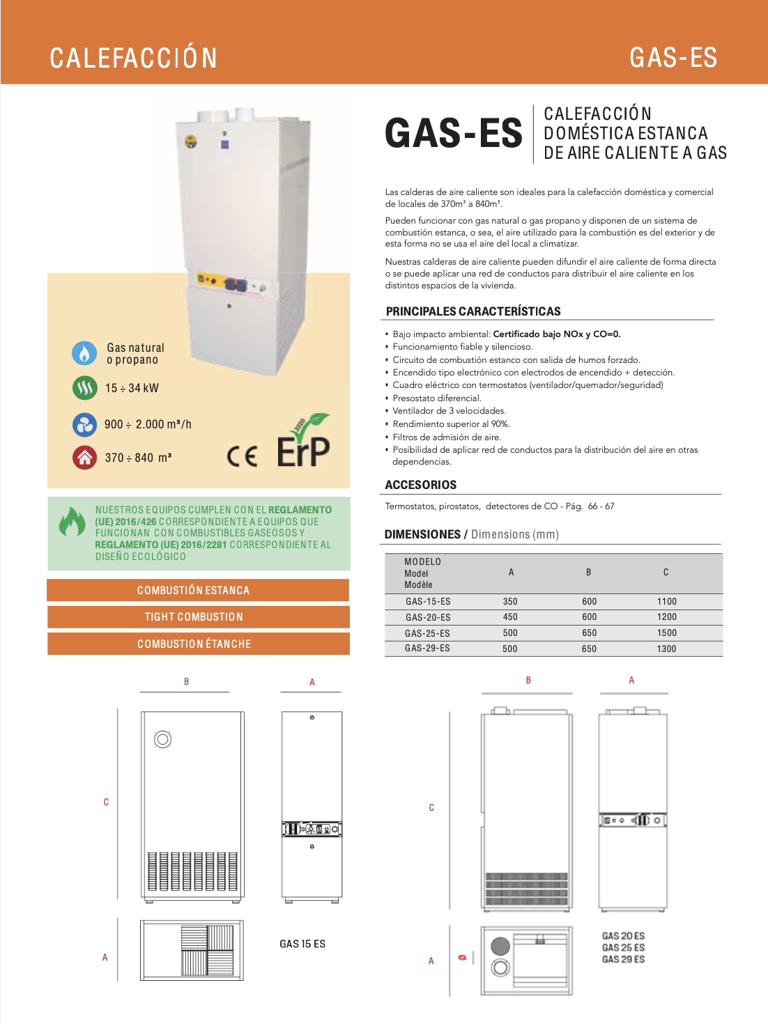Generadores de aire caliente industrial totalmente autónomos a gasóleo, gas natural o gas propano.