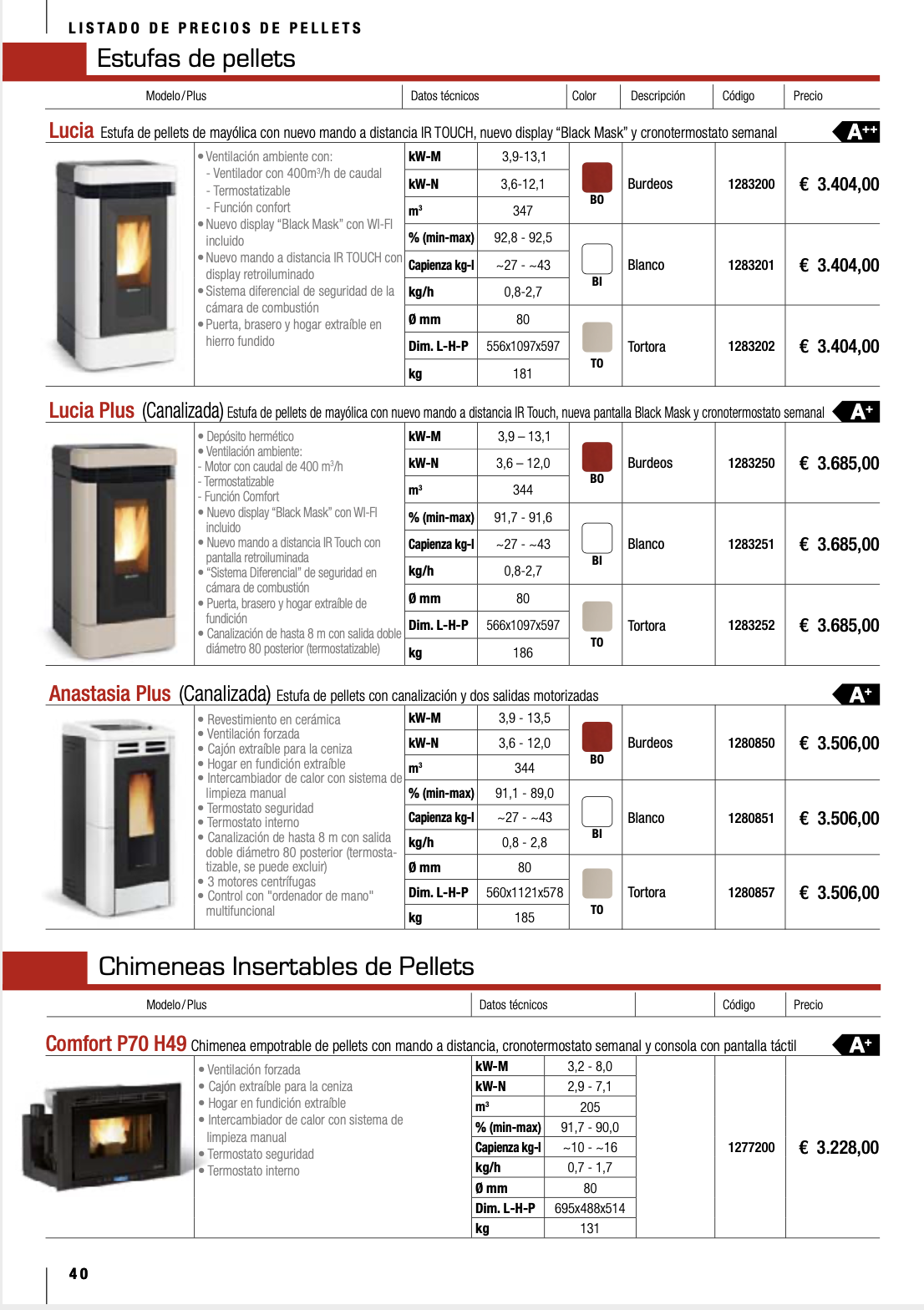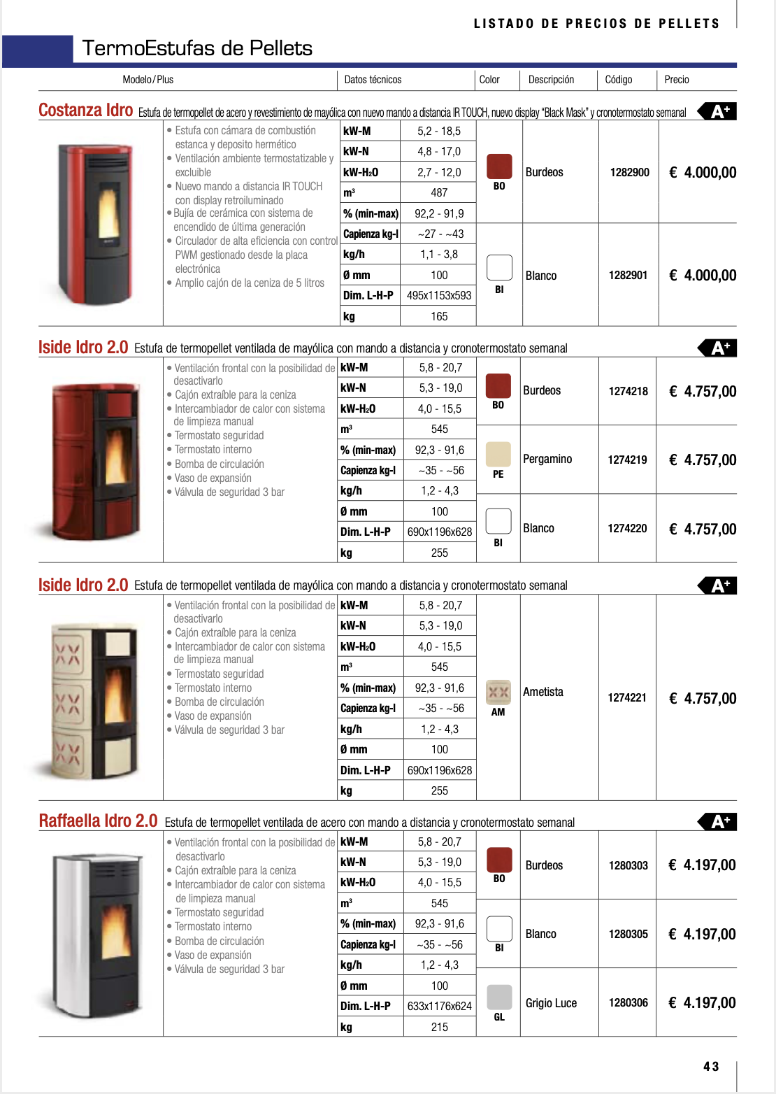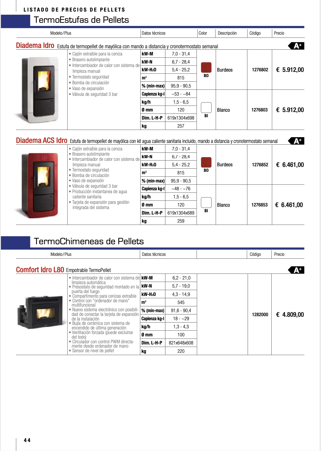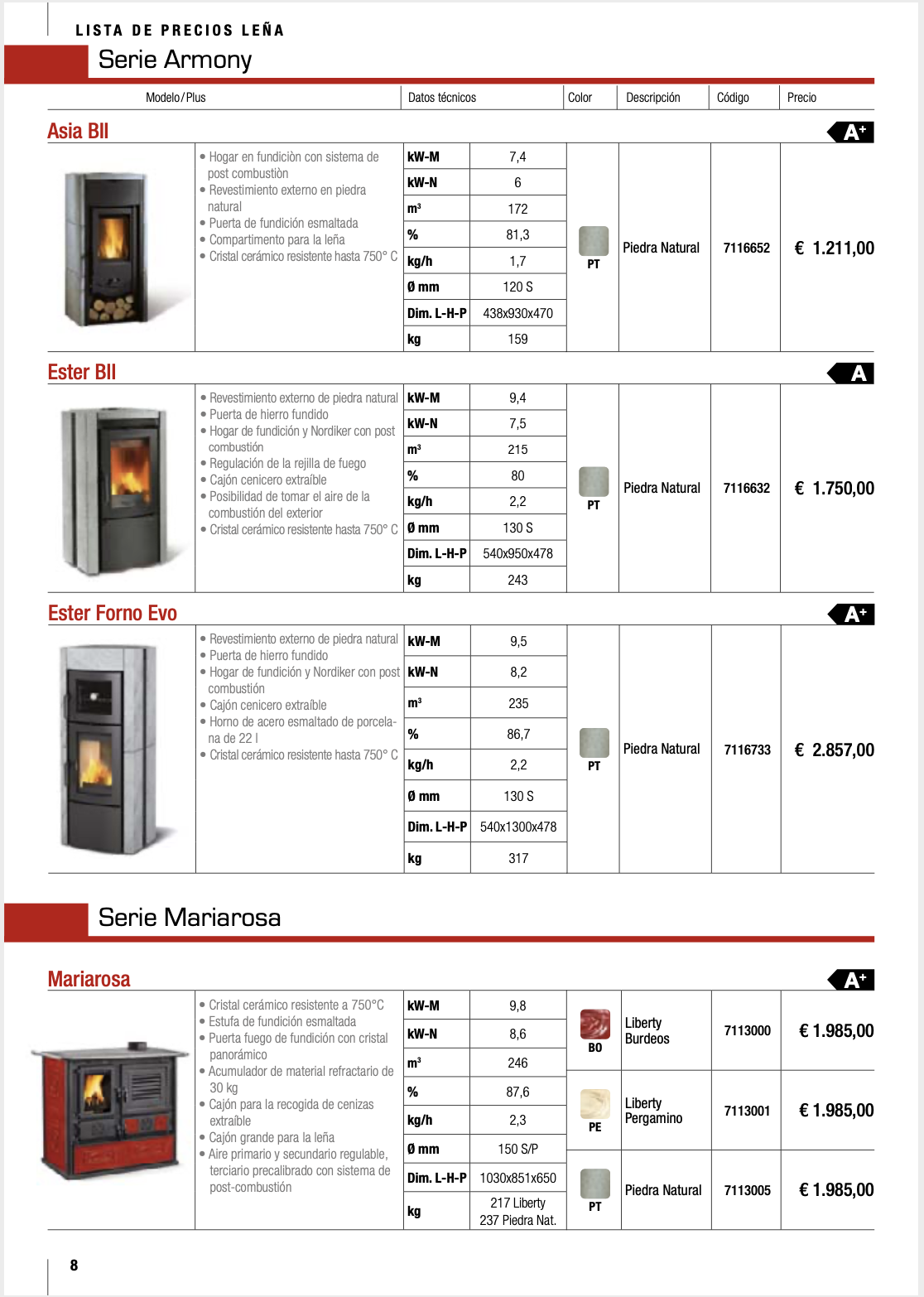 Disponemos de mas de 80 modelos, todos de alta eficiencia, con una gran gama de diseños y acabados, no dude en contactar con nosotros, nuestros tecnicos especializados, les aconsejaran sobre el equipo que mejor se ajusta a sus necesidades.