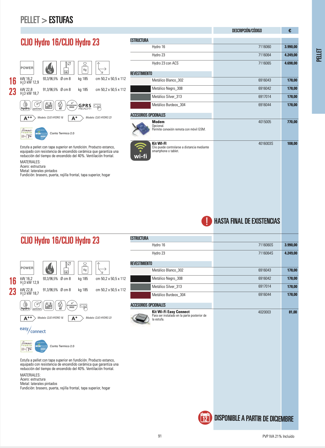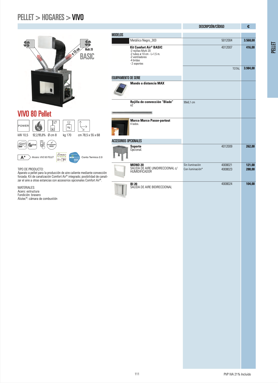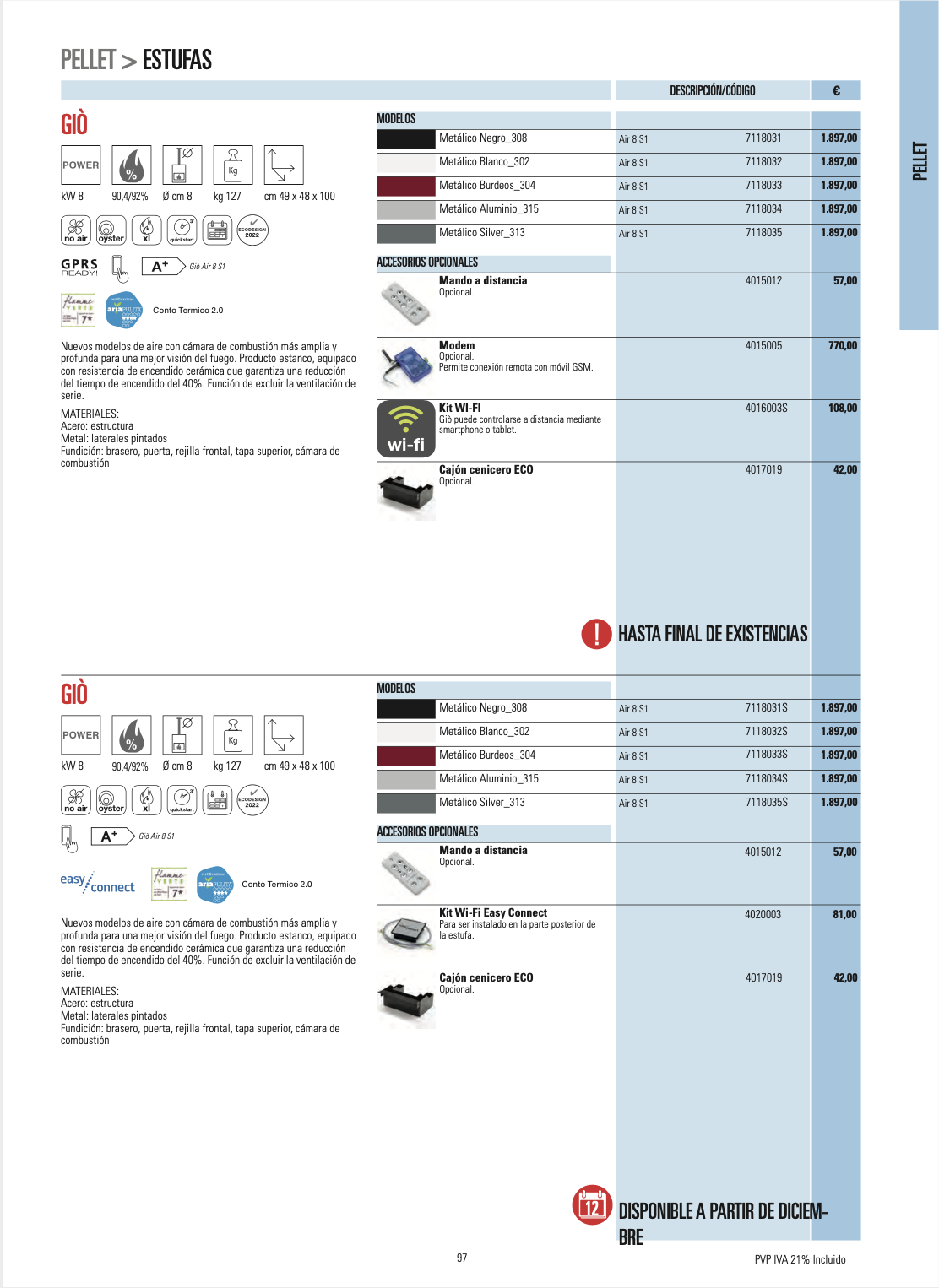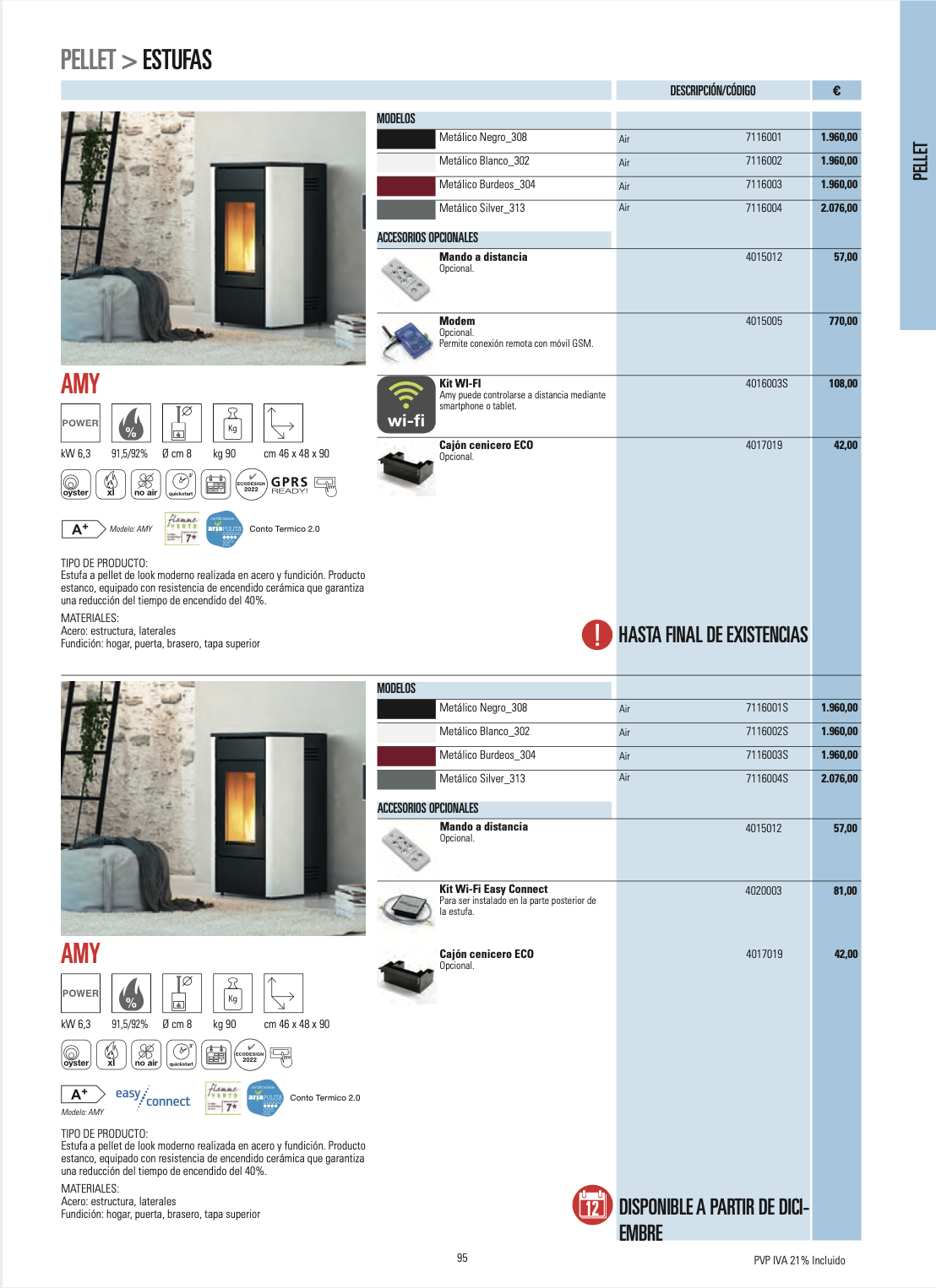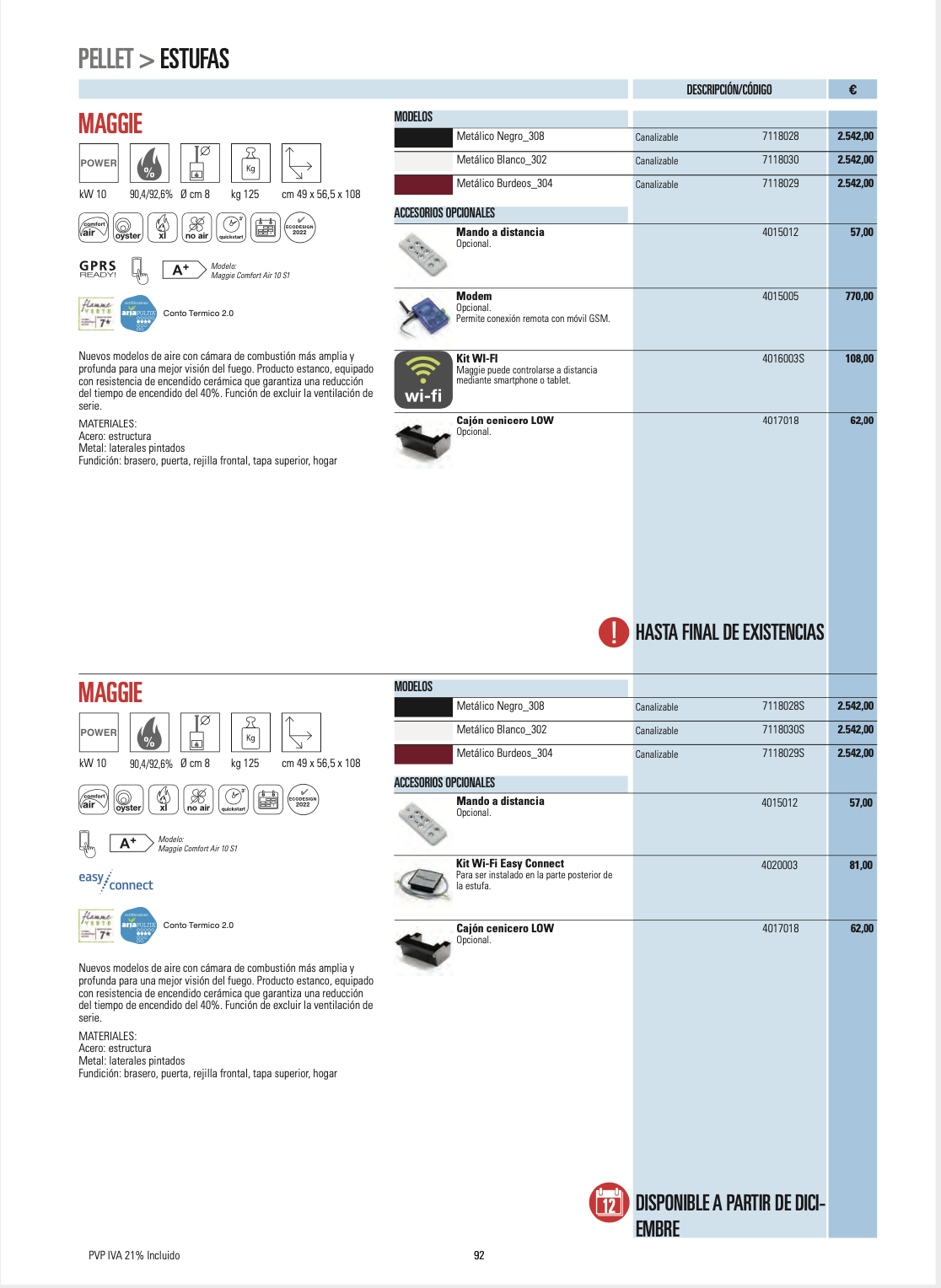 Disponemos de mas de 80 modelos, todos de alta eficiencia, con una gran gama de diseños y acabados, no dude en contactar con nosotros, nuestros tecnicos especializados, les aconsejaran sobre el equipo que mejor se ajusta a sus necesidades.